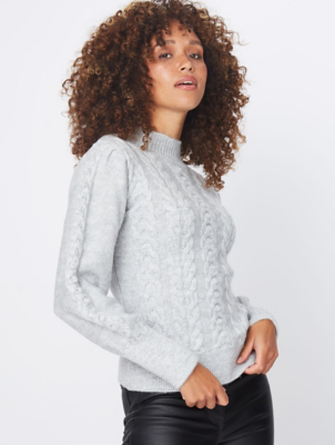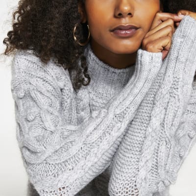Grey cable knit sweater quantity.